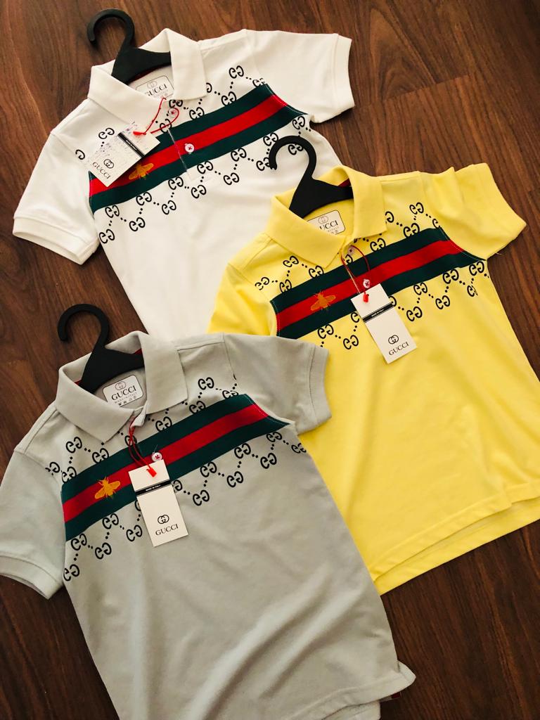 GUCCI PREMIUM COTTON LYCRA COLLAR T-SHIRT FOR BOYS
